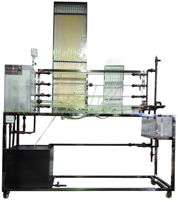 移動(dòng)式不銹鋼實(shí)驗(yàn)臺(tái)、儲(chǔ)水箱;雷諾測(cè)試管;伯努利測(cè)試管;沿程阻力系數(shù)測(cè)試管;突擴(kuò)、突縮測(cè)試管;閥門(mén)局部阻力系數(shù)測(cè)試管;孔板流量計(jì)測(cè)試管;文丘里流量計(jì)測(cè)試管;和皮托管測(cè)試管;測(cè)壓板直接顯示總水頭線和測(cè)壓管水頭線;壓力傳感器24套、流量傳感器4套、溫度傳感器1套、觸摸屏、測(cè)壓板。
