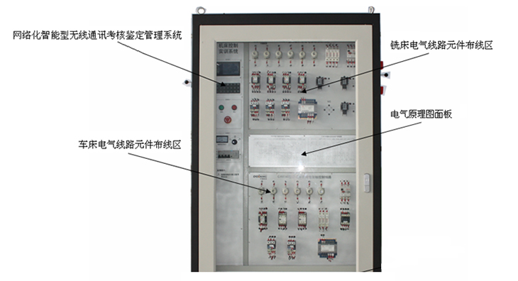 技能實(shí)訓(xùn)考核柜 四個機(jī)床操作按鈕及機(jī)床指示區(qū)面板 四個機(jī)床電氣線路元器件布線區(qū) 兩個機(jī)床轉(zhuǎn)接模塊區(qū) 網(wǎng)絡(luò)化智能型機(jī)床實(shí)訓(xùn)考核鑒定管理系統(tǒng) |
