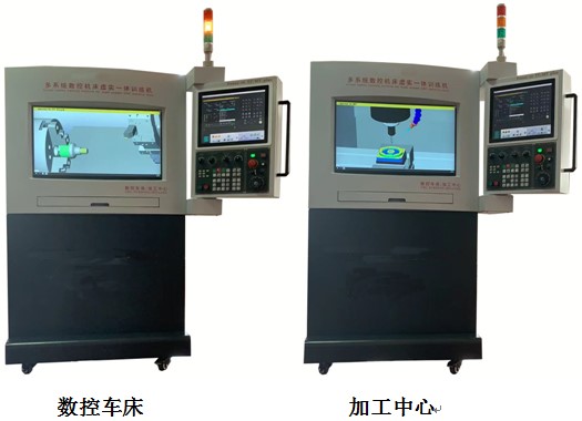 為了解決以上因素我公司開發(fā)了新一代多系統(tǒng)數(shù)控機床虛實一體訓練機,該設(shè)備軟件與硬件相結(jié)合,具有編程、加工和調(diào)試系統(tǒng)的功能,可以實現(xiàn)數(shù)控車床、數(shù)控加工中心的仿真操作,可手動編程或輸入CAD/CAM程序進行模擬加工。高度仿真的軟件數(shù)控系統(tǒng)界面與真實的數(shù)控系統(tǒng)相同,配備真實的操作面板與手輪,讓學生在學習過程中能體會到真實數(shù)控機床一致的操作體驗,為下一步操作真實機床打好基礎(chǔ)而特別設(shè)計。