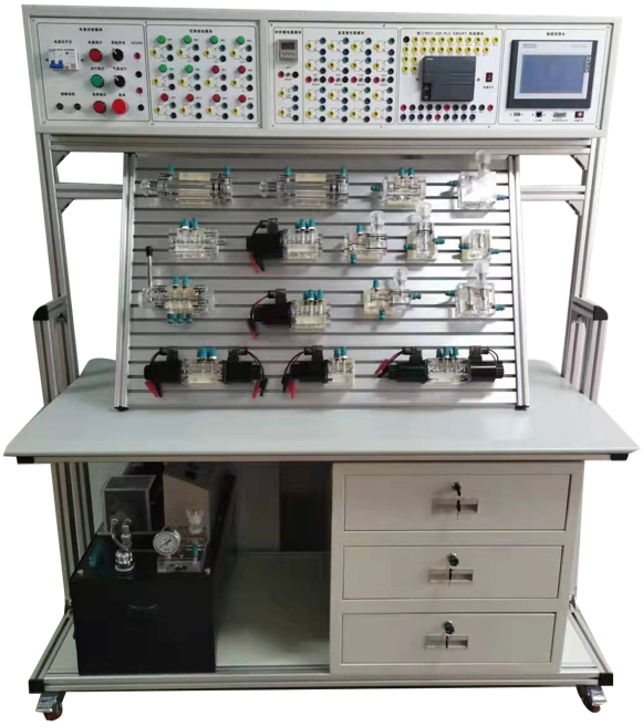 (3)配有控制模塊:電源模塊,PLC控制模塊,繼電器控制模塊,時(shí)間繼電器控制模塊、控制按鈕模塊,液壓元件獨(dú)立模塊等。
