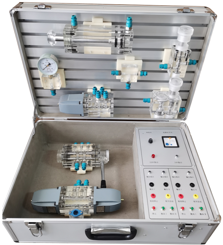 透明液壓傳動實驗箱,液壓傳動基礎(chǔ)實訓箱,液壓傳動實驗箱用于學生進行液壓傳動實驗,面向?qū)I(yè)有機制、數(shù)控、機電一體化、物理等專業(yè),是一個與《液壓與氣壓傳動》課程配套的實驗室。液壓傳動實驗臺能開出的實驗有:液壓泵的裝拆、液壓泵的性能測試、液壓閥的性能測試、液壓回路的性能測試等類型的實驗。液壓教學實驗臺突出特色有兩個:一是,創(chuàng)新;二是,動手!皠(chuàng)新”體現(xiàn)在每個同學都可以按照自己的思路來設(shè)計和搭建回路,可以是每人一個方案,也可以是一人幾個方案,“動手”體現(xiàn)在從方案的設(shè)計到圖紙的繪制,再到油路、控制電路的搭建,直到最后系統(tǒng)的運行都由學生自己動手完成。
