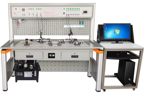 液壓綜合實驗臺由實驗桌、實驗操作區(qū)、網孔工具掛板、液壓泵站、常用液壓元件、主控機箱、電腦桌等幾部分組成。