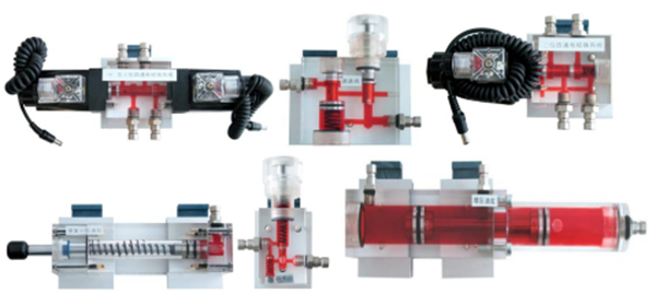 液壓綜合實驗臺透明液壓元件均采用進口透明有機玻璃材料由數控加工中心加工制作而成,可清晰直觀的觀察和了解到液壓元件的內部結構及液壓傳動回路的工作過程。