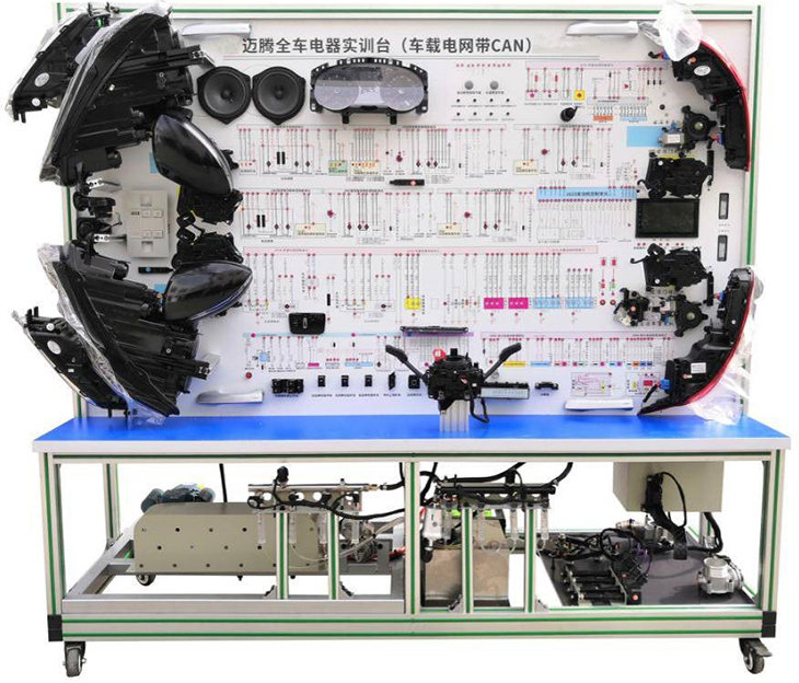2.設備面板采用耐創(chuàng)擊、耐污染、防火、防潮的高級鋁塑板,表面經(jīng)特殊工藝噴涂底漆處理;面板打印有永不褪色的彩色電路圖;學員可直觀對照電路圖和實物,認識和分析汽車整車電器各系統(tǒng)的工作原理。
