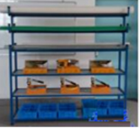 3、模塊中間模塊設計為貨架形式,配置有大量零件工具盒,適合安裝實訓使用。