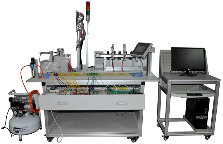 機電一體化實訓設備、機電一體化實訓裝置由由鋁合金導軌式實訓臺、典型的機電一體化設備的機械部件、PLC模塊、變頻器模塊、按鈕模塊、電源模塊、模擬生產設備實訓模塊、接線端子排和各種傳感器、計算機等組成。整體結構采用開放式和拆裝式,實訓裝置用于機械部件組裝,可根據現有的機械部件組裝生產設備,也可添加機械部件組裝其他生產設備,使整個裝置能夠靈活的按教學或競賽要求組裝具有生產功能的機電一體化設備。模塊采用標準結構和抽屜式模塊放置架,互換性強;同時還要求具有可拓展功能,可以組成更加大型的生產模擬系統(tǒng),以配合各個用戶學校不同層次,不同專業(yè)的教學及培訓要求。