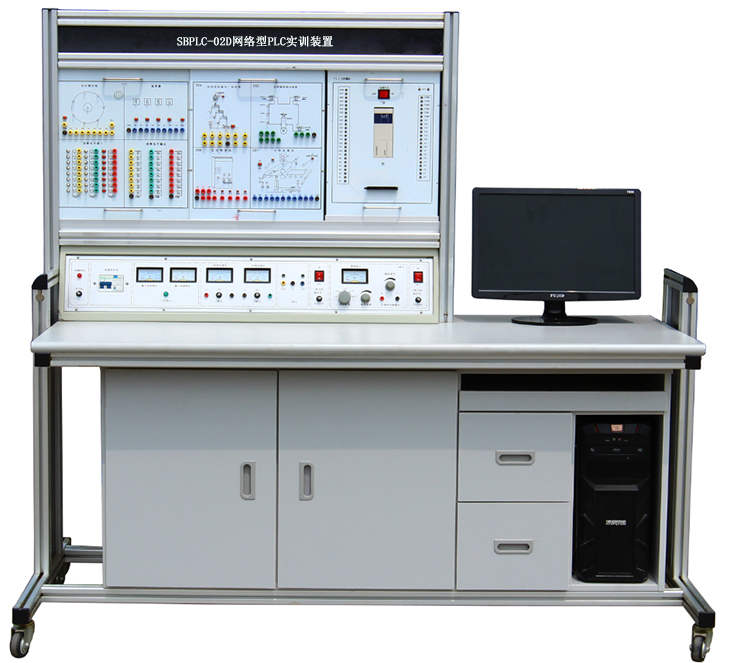 SBPLC-02D網(wǎng)絡(luò)型PLC實訓(xùn)裝置,PLC控制+變頻+觸摸屏+步進+伺服