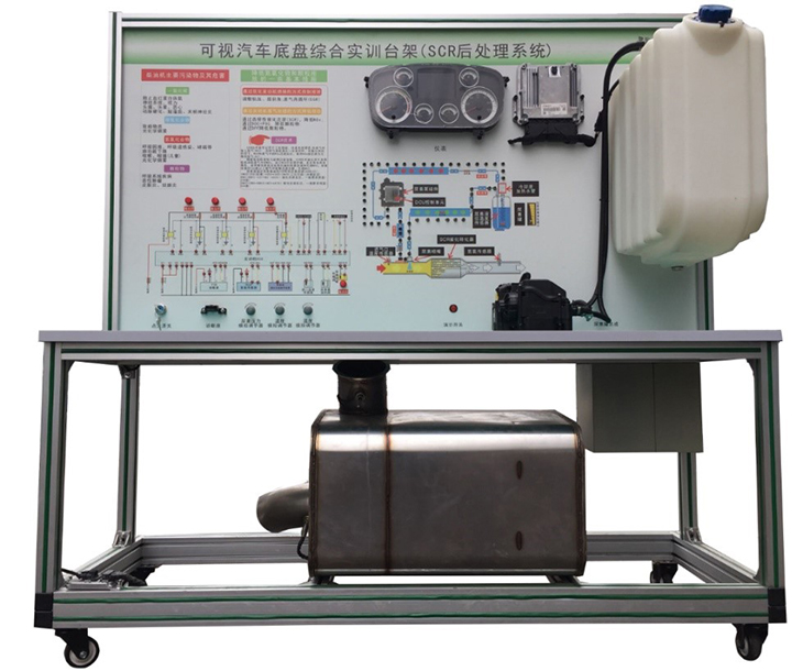 SCR后處理系統(tǒng)實驗設備底座框架采用高強度鋁合金型材拼接而成,平臺面板采用4mm厚耐腐蝕、耐創(chuàng)擊、耐污染、防火、防潮的高級鋁塑板,表面經(jīng)特殊工藝噴涂底漆處理;面板打印有永不褪色的彩色電路圖,表面噴涂光油;學生可直觀對照電路圖,認識和分析控制系統(tǒng)的工作原理;實訓臺面板上安裝有檢測端子、可直接在面板上檢測電信號,如電阻、電壓、電流等。