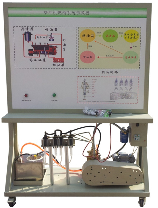 該設(shè)備采用翻新SX2220 WD615柴油發(fā)動機燃油噴射系統(tǒng)實物制作,充分展示柴油發(fā)動機燃油噴射系統(tǒng)的組成結(jié)構(gòu)和工作過程。適用于學校對柴油發(fā)動機燃油噴射系統(tǒng)理論和維修實訓的教學需要。