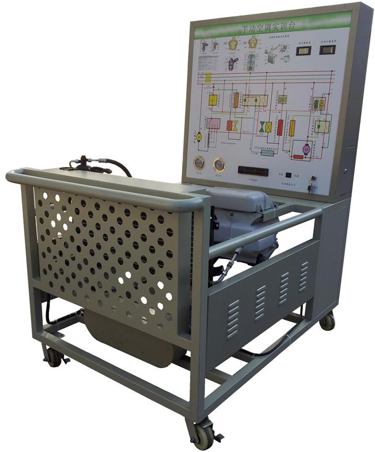 2.由三相電機(jī)做為動(dòng)力源,帶動(dòng)空調(diào)壓縮機(jī)工作。操作空調(diào)控制面板,可真實(shí)演示汽車單風(fēng)口空調(diào)系統(tǒng)的工作過程以及工作原理。