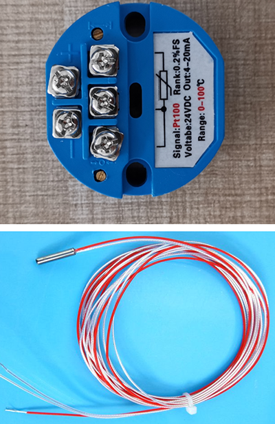特點:Pt100傳感器精度高,熱補償性較好,用于做標準校驗用熱電阻。變送器部分供電DC24V,輸出4-20mA DC通信功能,用于測量加熱模塊內部的溫度,是工業(yè)現(xiàn)場中常用的一溫度測量儀表。精度為0.5級