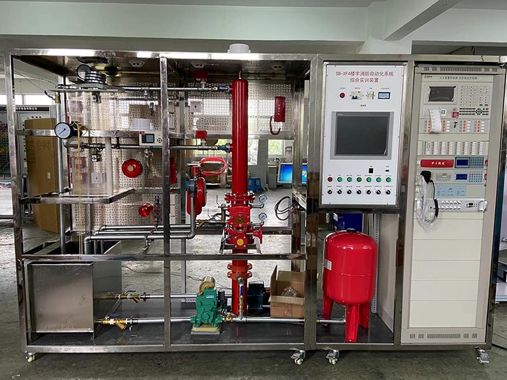 模型框架和水箱等主要部件全部使用不銹鋼器件,保證不生銹、不易老化,模擬兩層大樓噴淋滅火系統(tǒng);模型系統(tǒng)主要由噴淋水泵、氣壓罐、濕式報(bào)警閥、水力警鈴、延時(shí)器、壓力開關(guān)、水流指示器、封閉式噴頭、試驗(yàn)閥、火災(zāi)探測(cè)器、火災(zāi)報(bào)警器等典型噴水滅火設(shè)備構(gòu)成,能生動(dòng)模擬大樓內(nèi)水滅火系統(tǒng)的典型結(jié)構(gòu)。